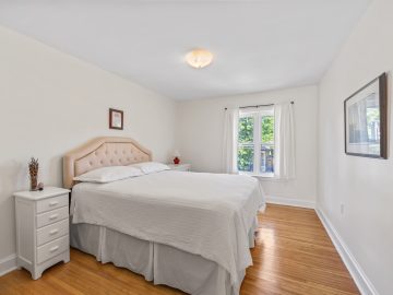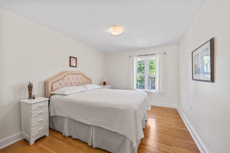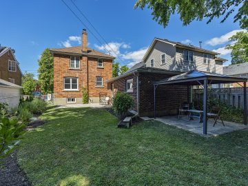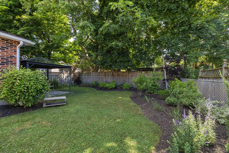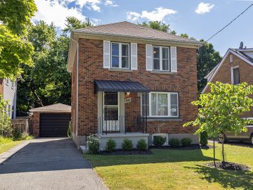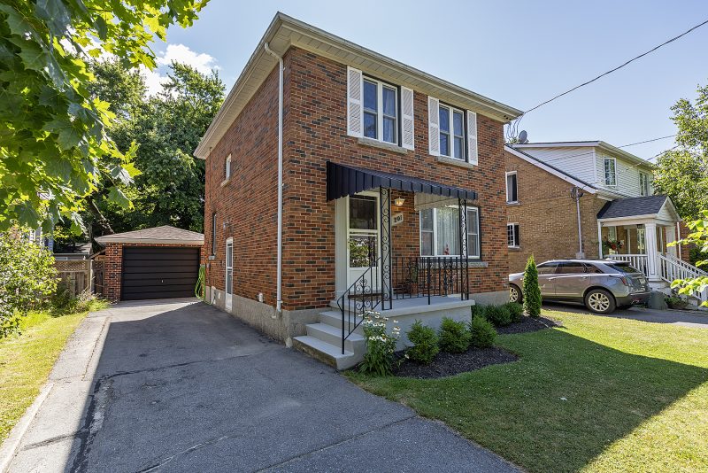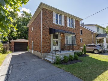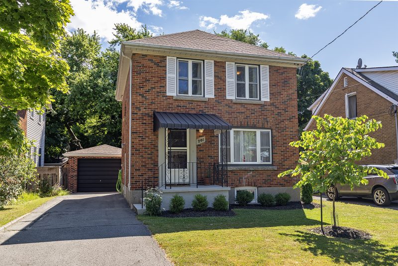 Welcome to 201 Willingdon Avenue, a classic all brick two storey home set on a pristine landscaped lot in downtown Kingston. Restored to show its original splendour, this home features refinished thin strip hardwood flooring, wide profile trim and fresh neutral paint throughout the principal rooms. Welcoming covered front porch enters through a solid wood front door to foyer and coat closet. Step into the spacious living room with large west facing window overlooking the front yard and cove moulding ceiling detail. Pass through to the dining room with east facing window overlooking the landscaped rear yard gardens, complete with vintage chandelier and cove moulding. Efficient kitchen with vinyl plank flooring complementing colour matched cabinetry, updated counter top and retro appliances. Up the maple staircase you will find three well sized bedrooms each with windows for impressive natural light, closets and original wood passage doors and hardware. Full main bathroom with tiled tub/shower and extended countertop vanity with tiled backsplash. Bonus finished lower level space featuring recreation room, full bathroom, summer kitchen, and laundry/mechanical area. Outside you will be able to enjoy the interlock patio that incorporates the rear yard and detached single car garage. Lovely perennial gardens and private shade gazebo for quiet summer evenings. If you have ever desired to live on a picturesque downtown street where you can walk to so many amazing local amenities you owe it to yourself to take a look at this house.
